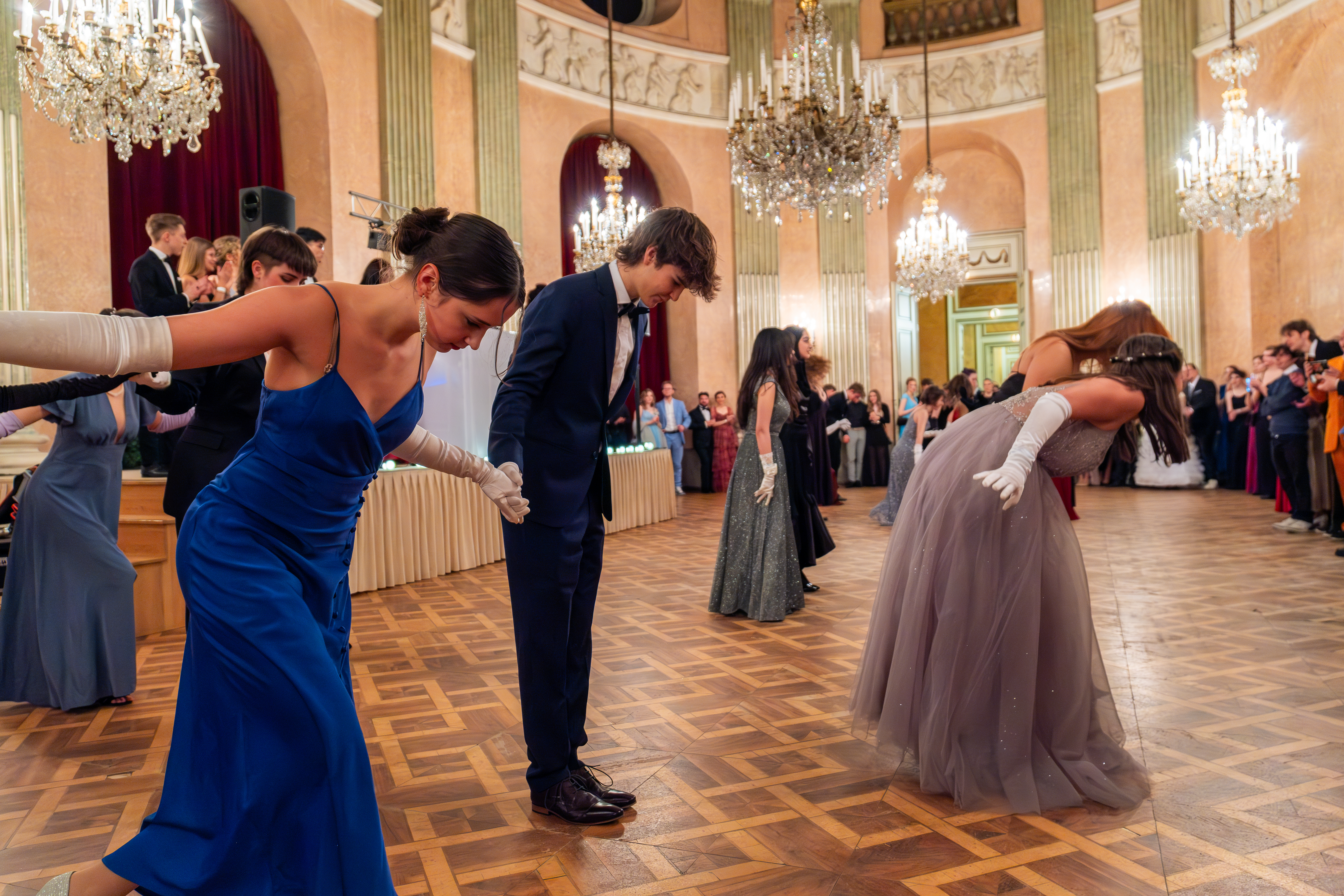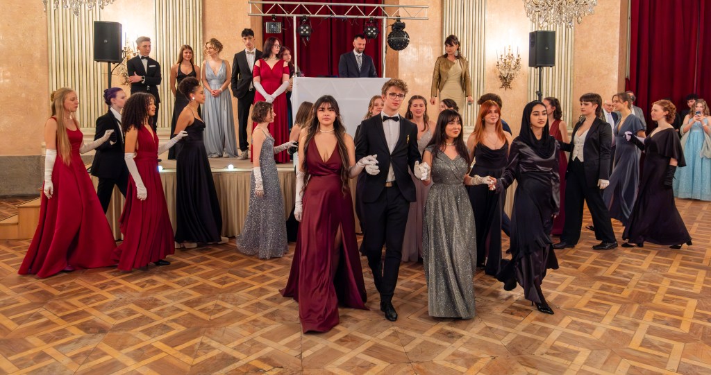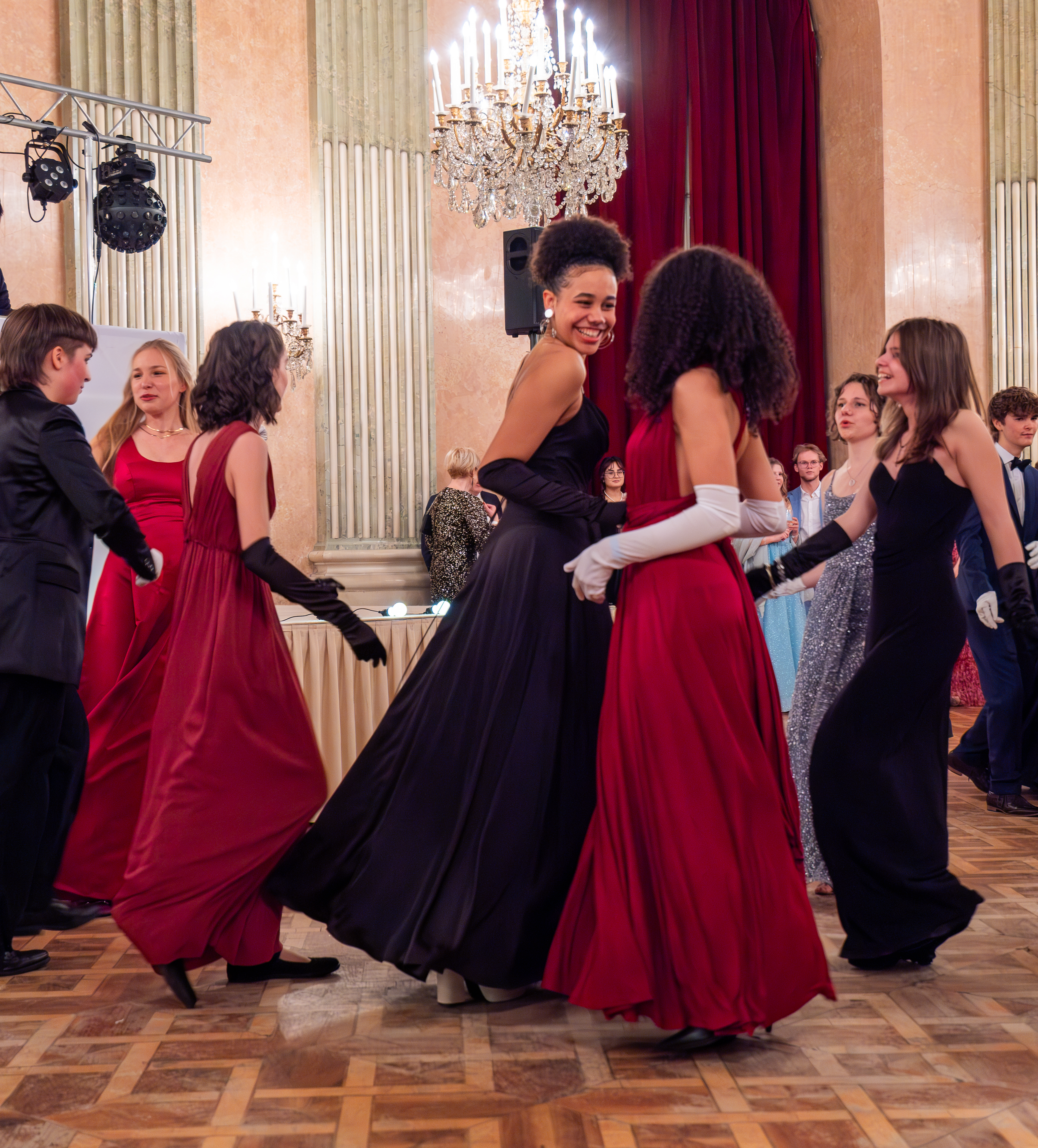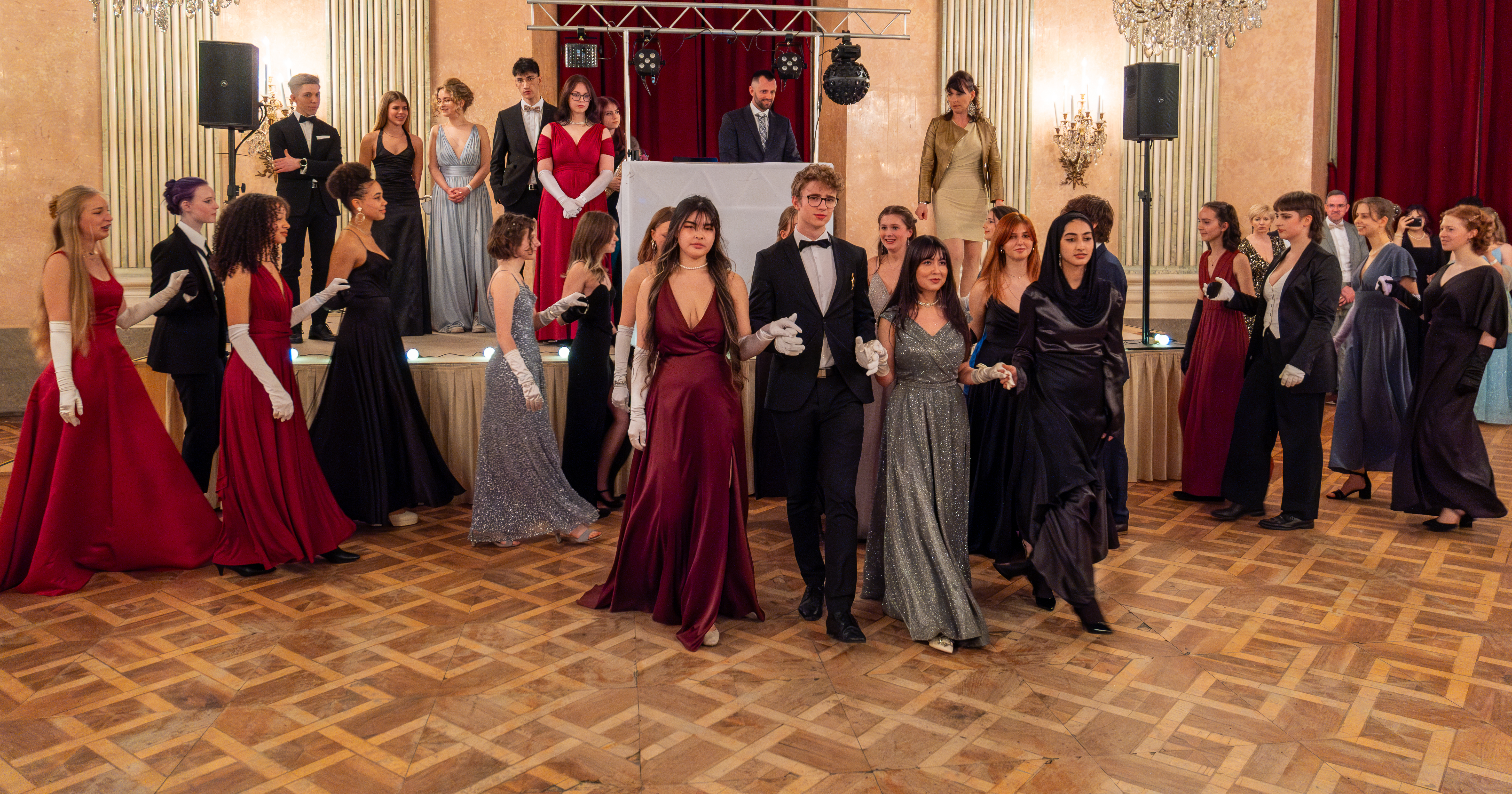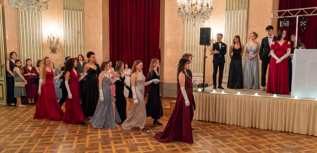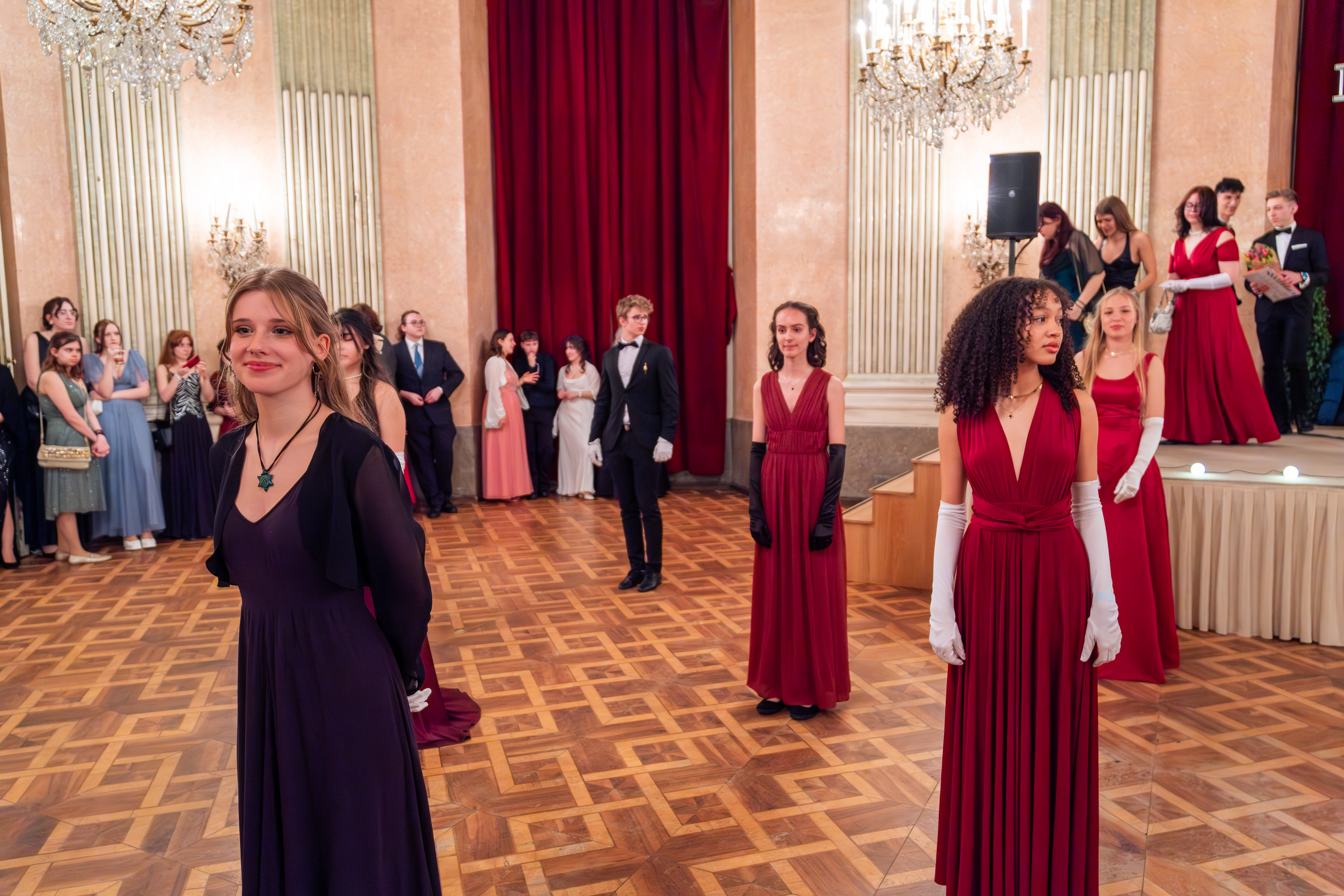 Wir freuen uns euch im bodenlangen Ballkleid, Hosenanzug oder Anzug mit Krawatte oder Masche begrüßen zu dürfen. Farblich dürft ihr euch gerne selbst etwas überlegen.