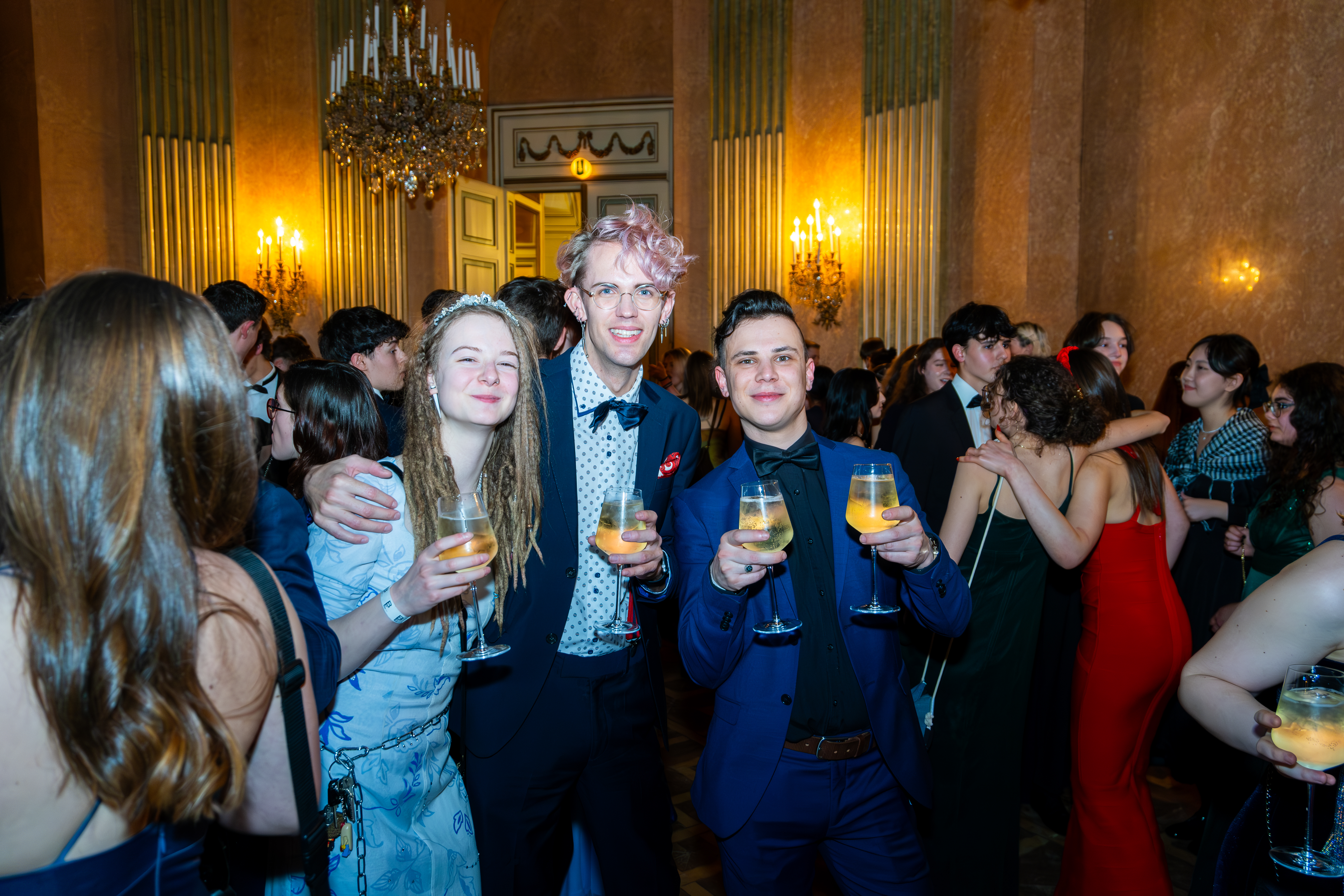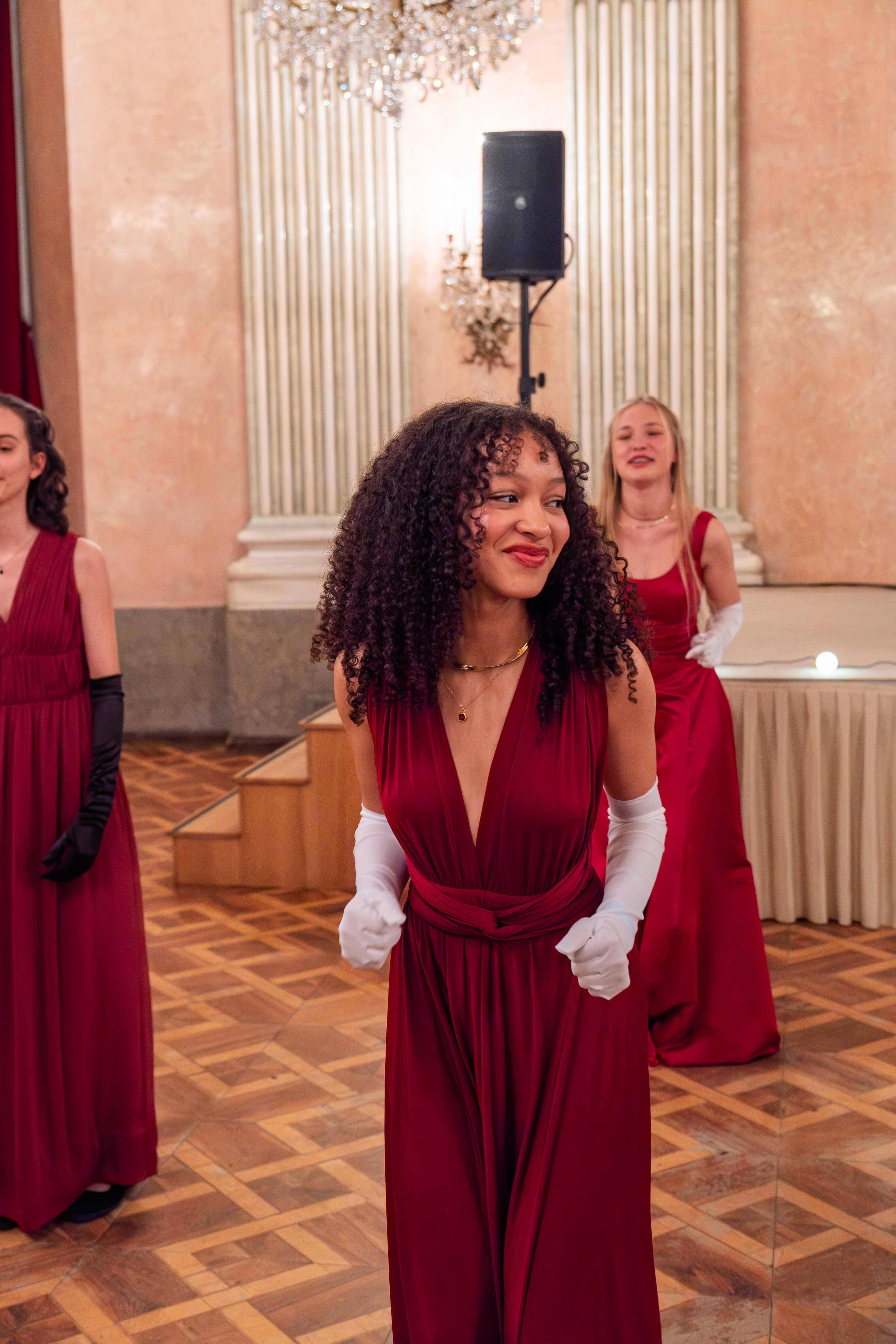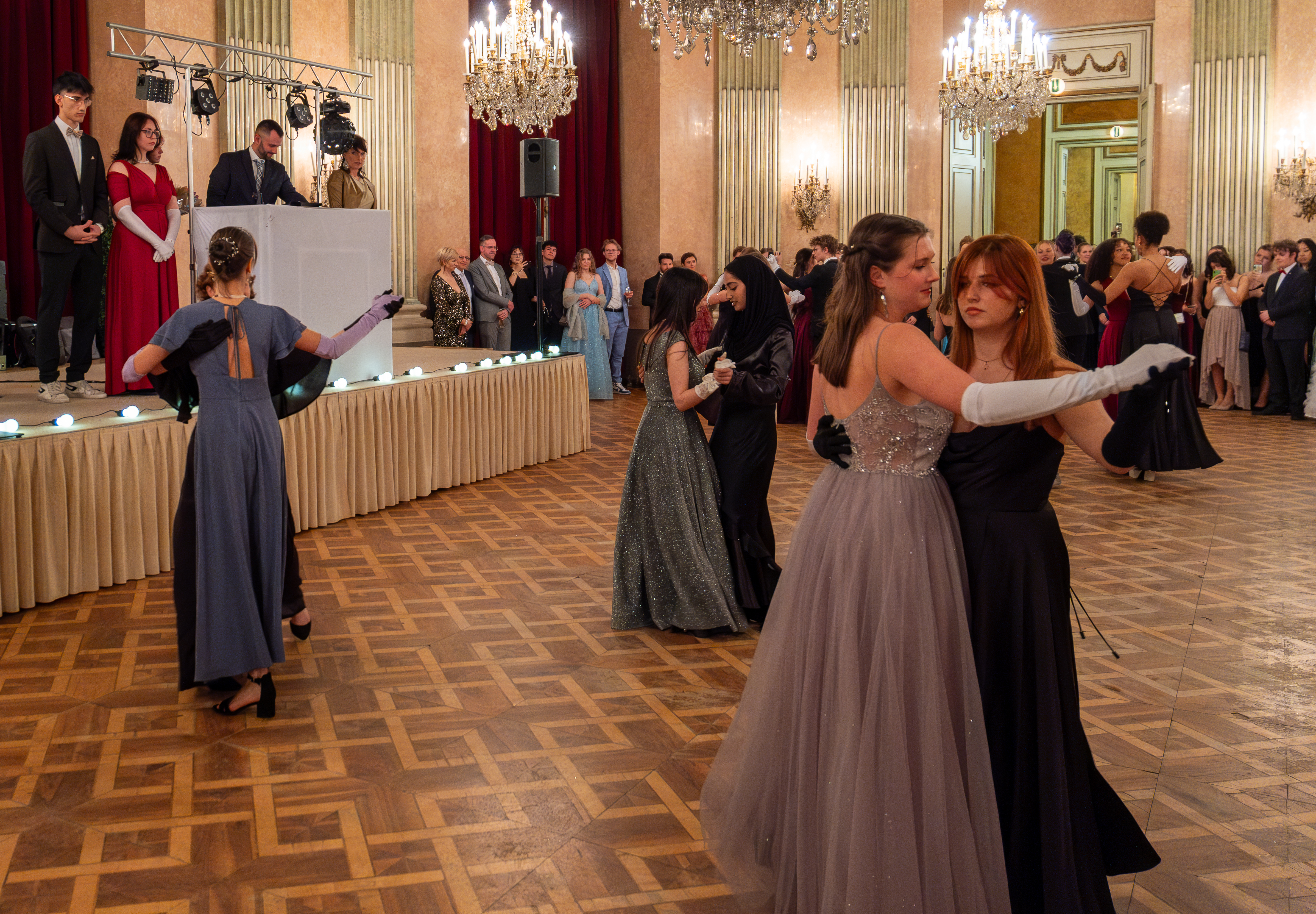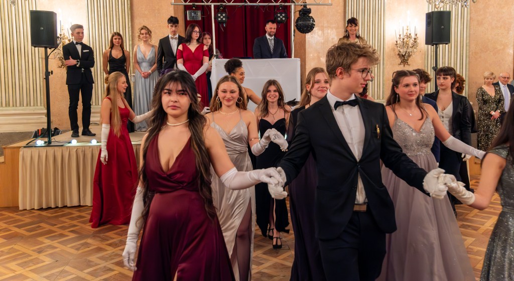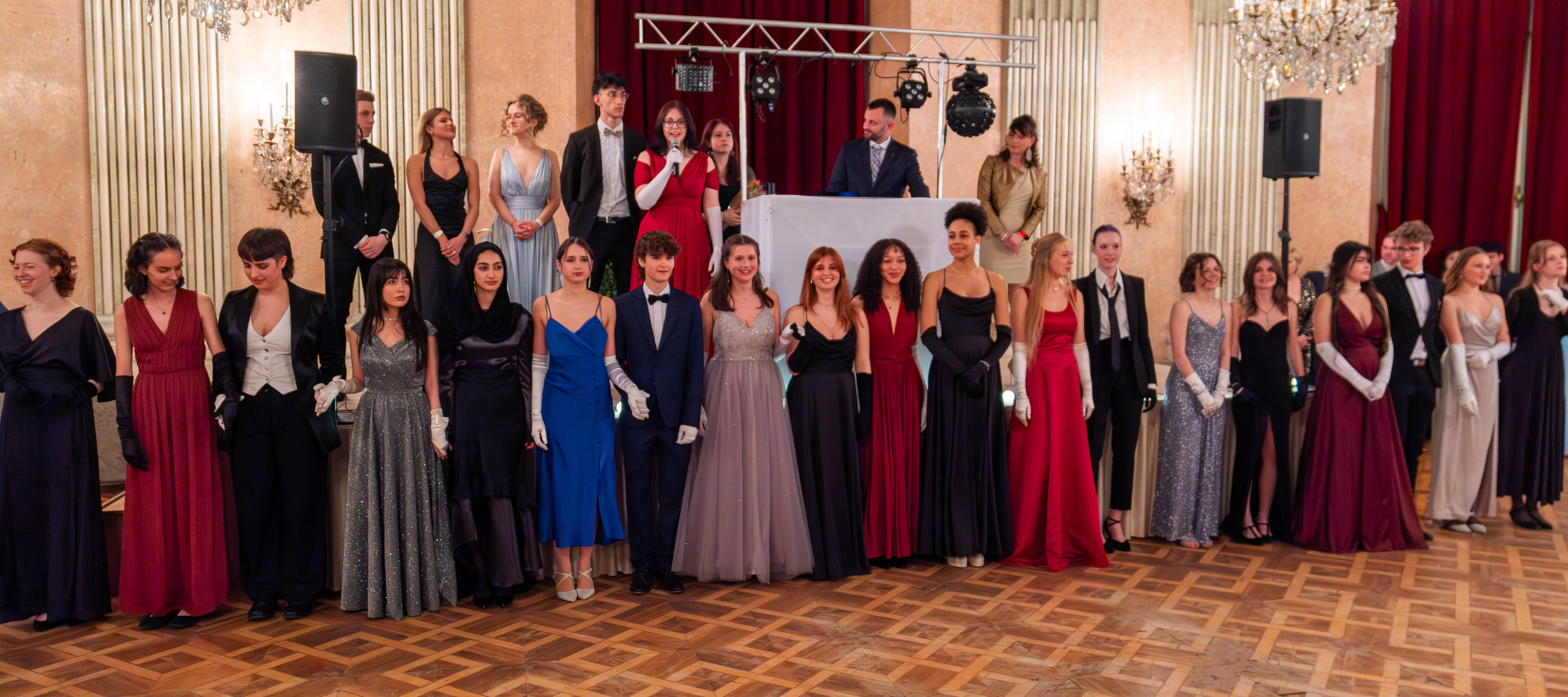 Wir freuen uns euch im bodenlangen Ballkleid, Hosenanzug oder Anzug mit Krawatte oder Masche begrüßen zu dürfen. Farblich dürft ihr euch gerne selbst etwas überlegen.