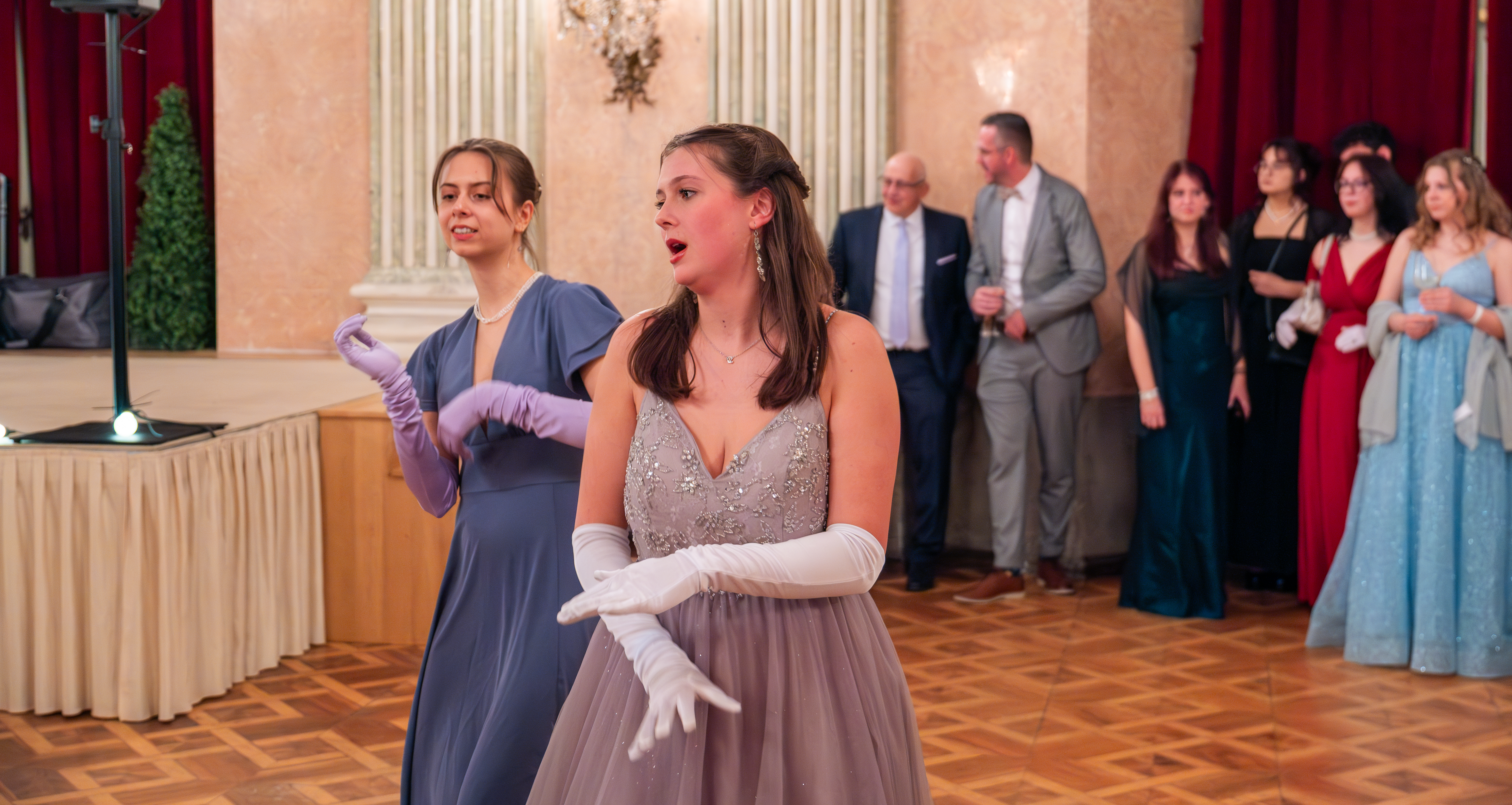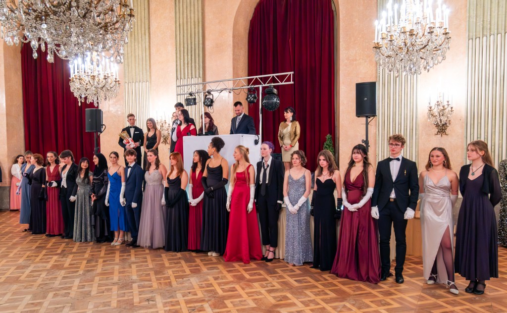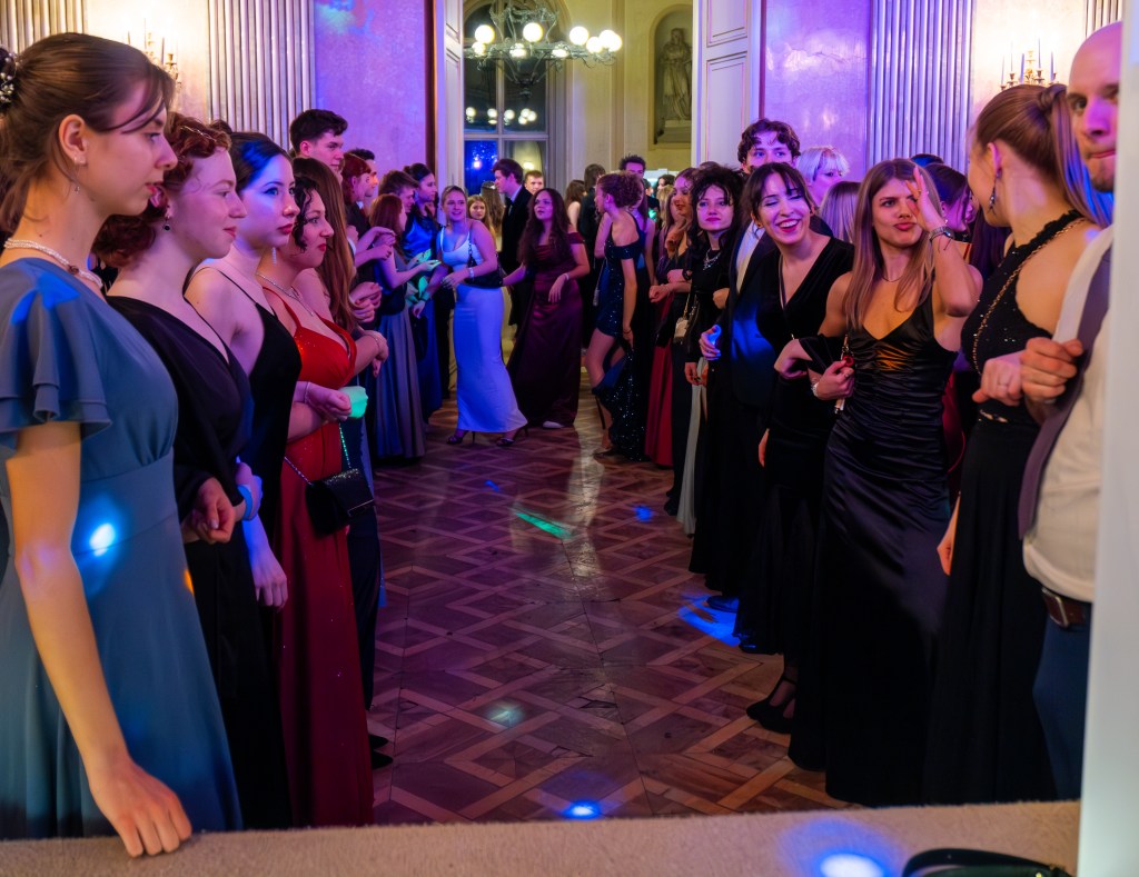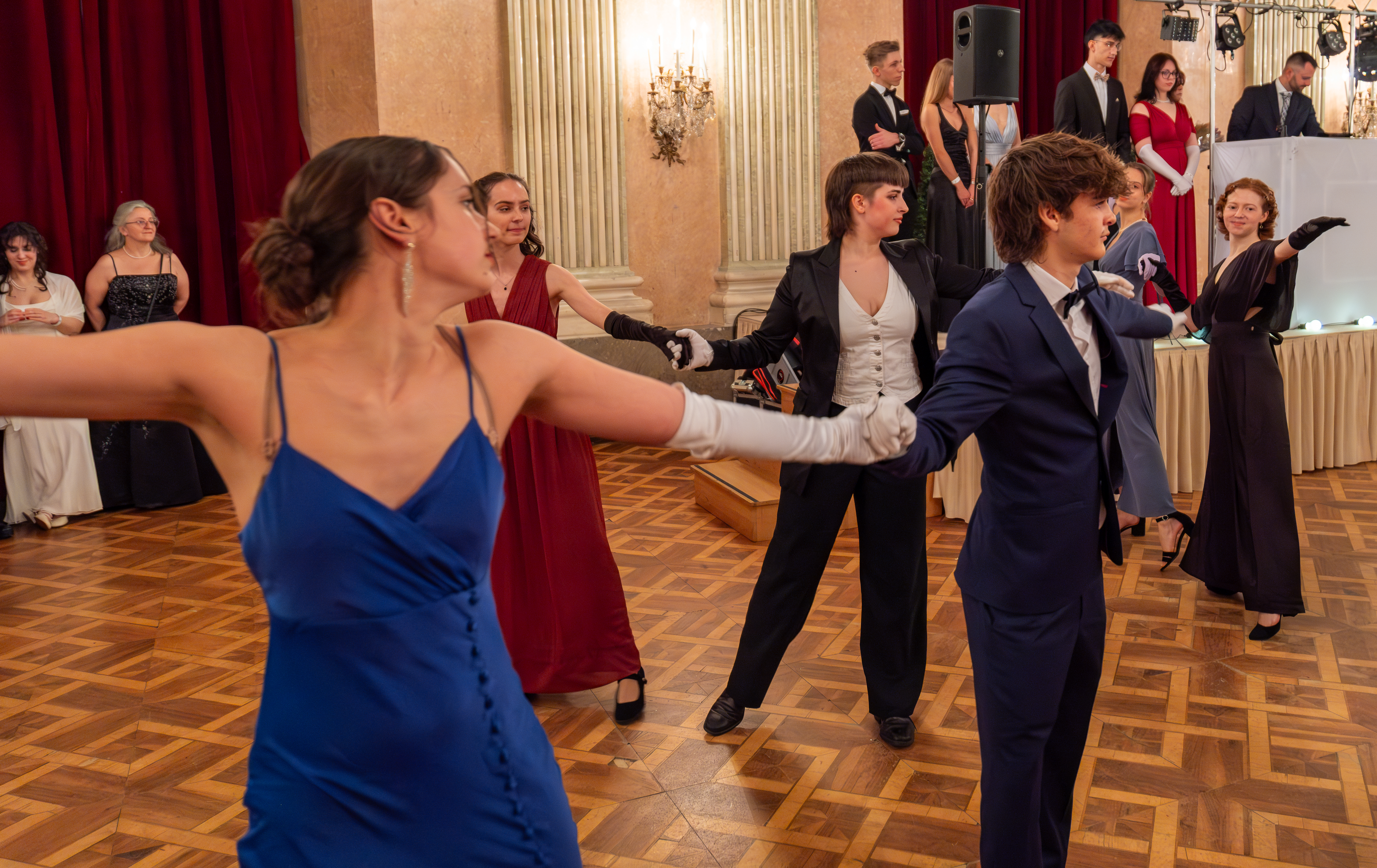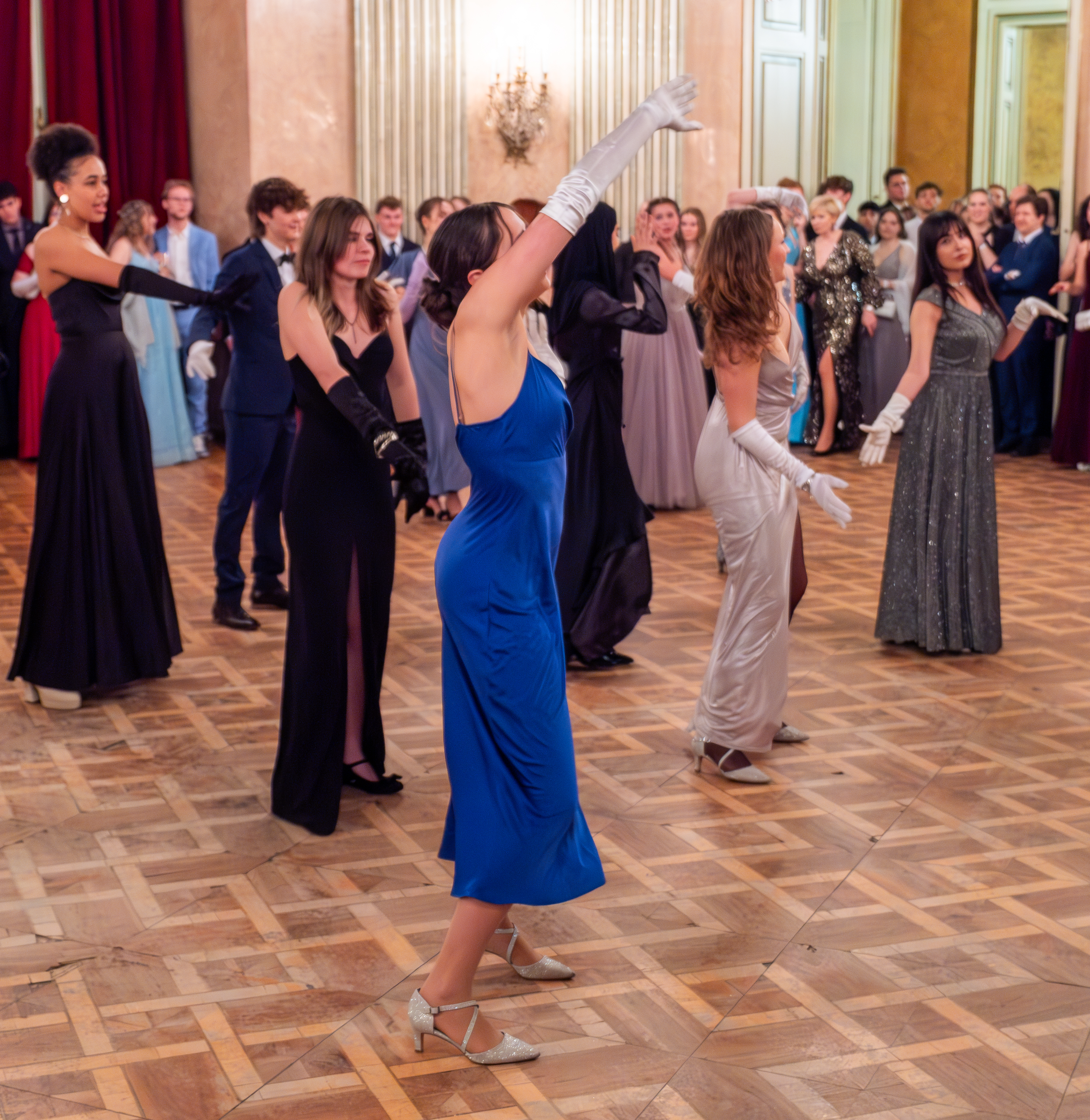 Wir freuen uns euch im bodenlangen Ballkleid, Hosenanzug oder Anzug mit Krawatte oder Masche begrüßen zu dürfen. Farblich dürft ihr euch gerne selbst etwas überlegen.