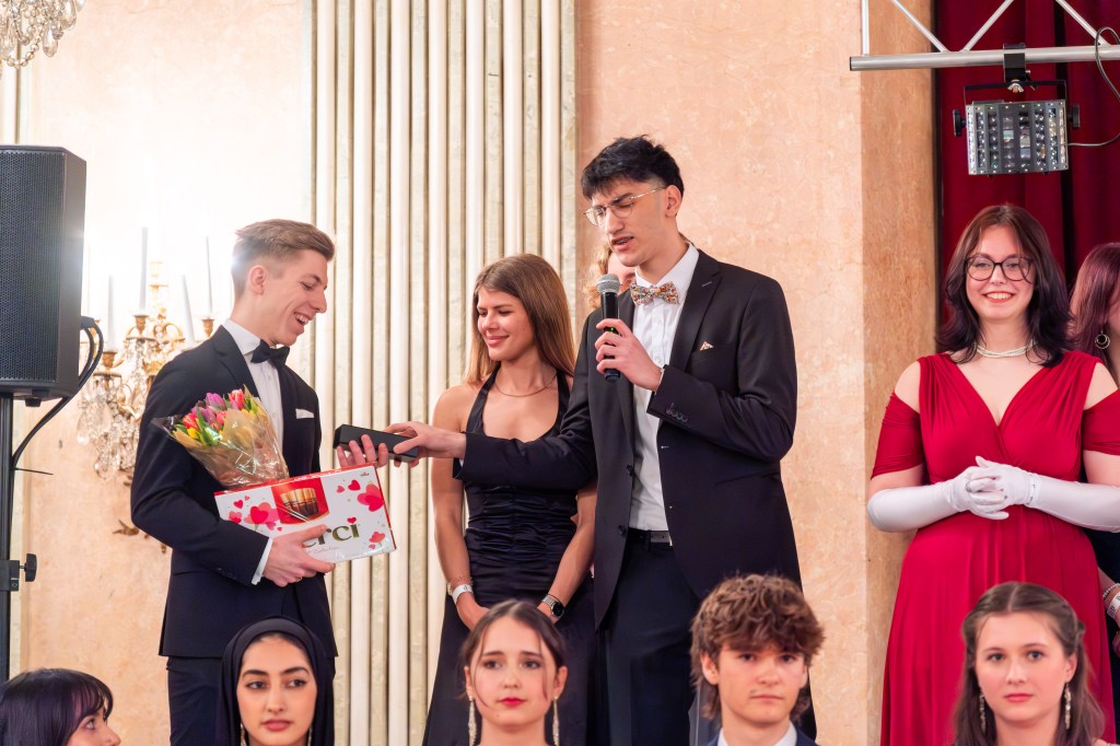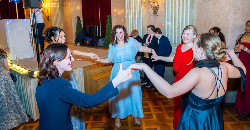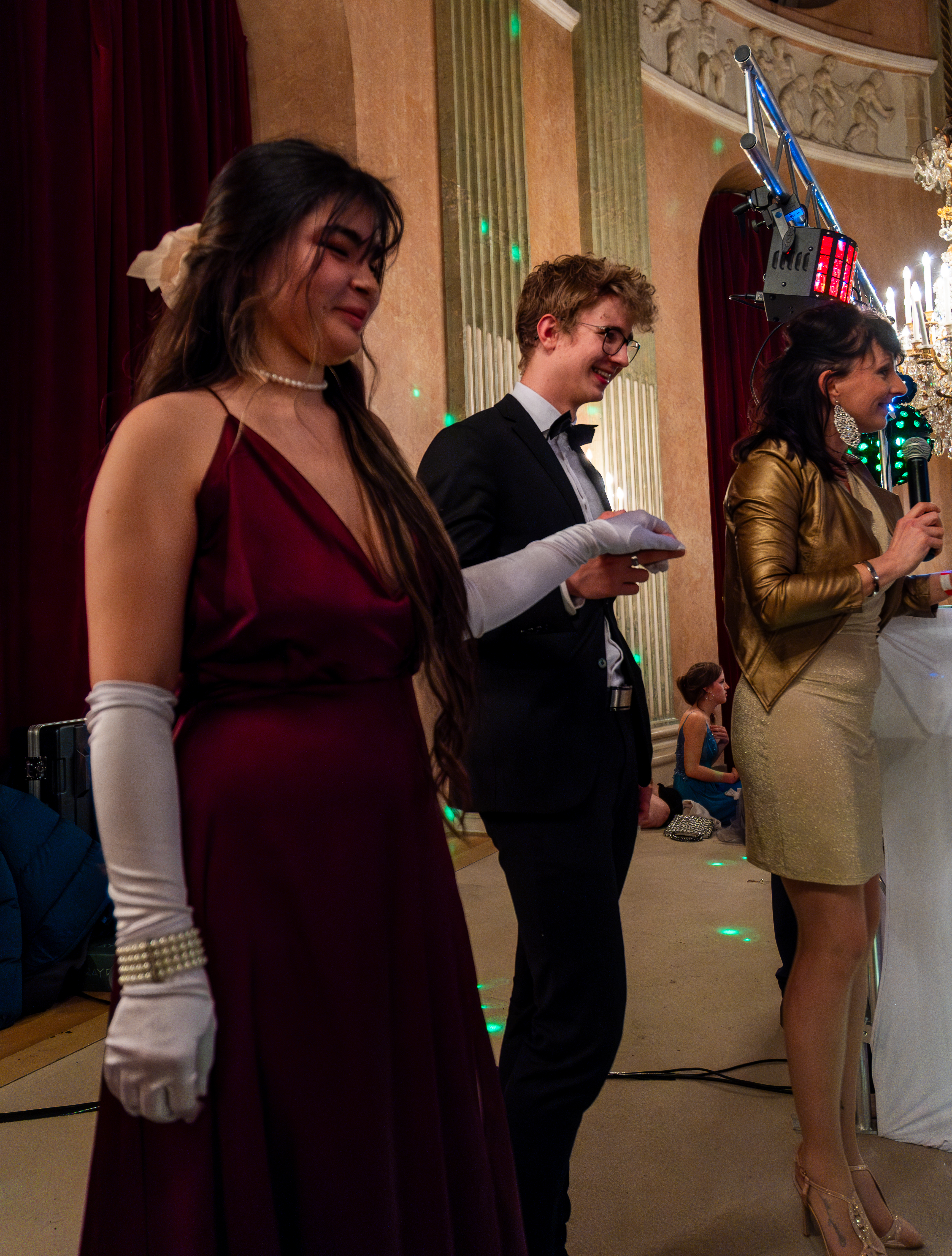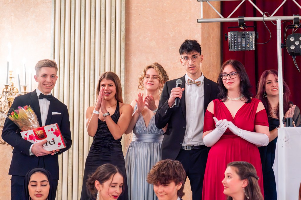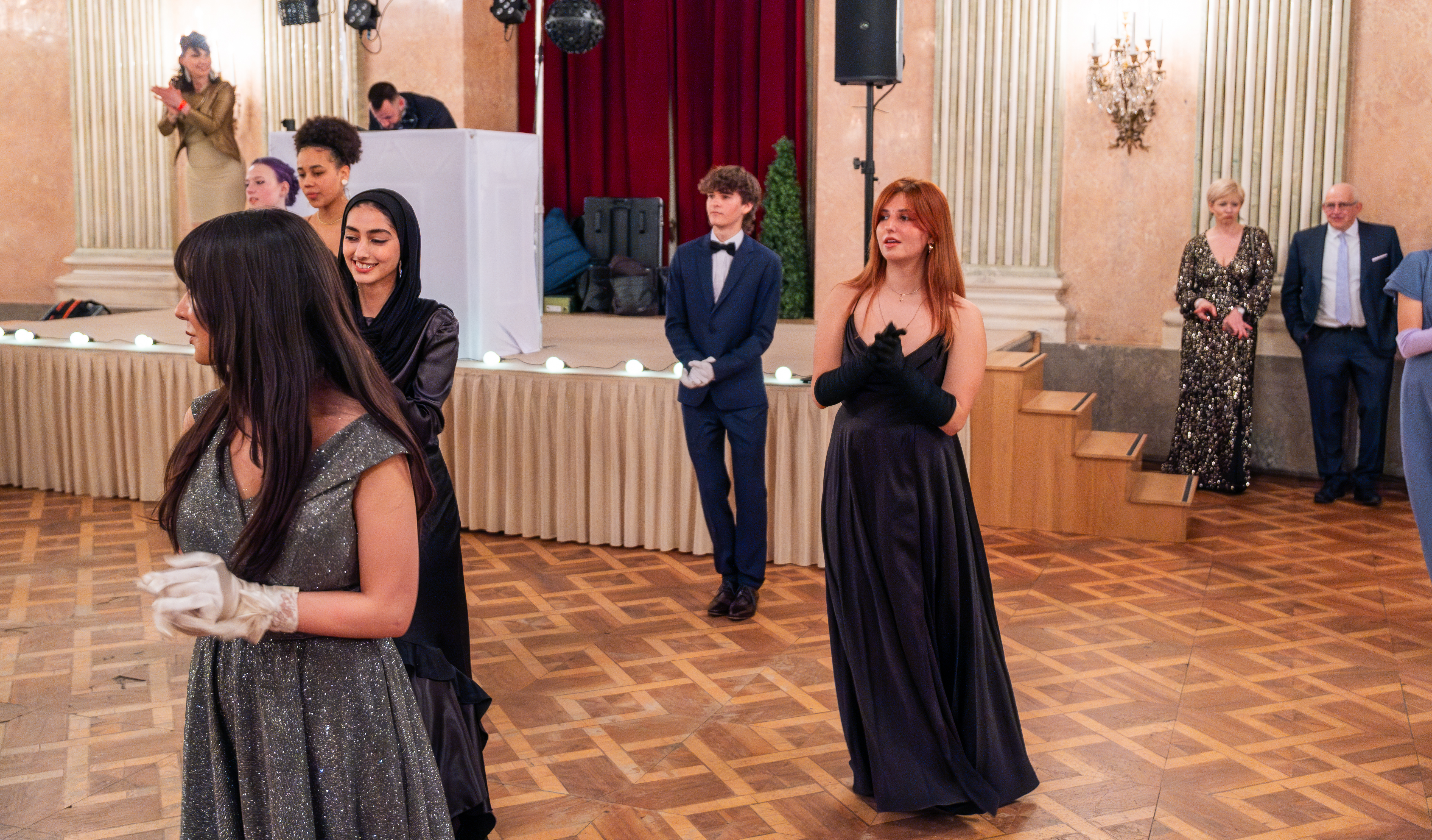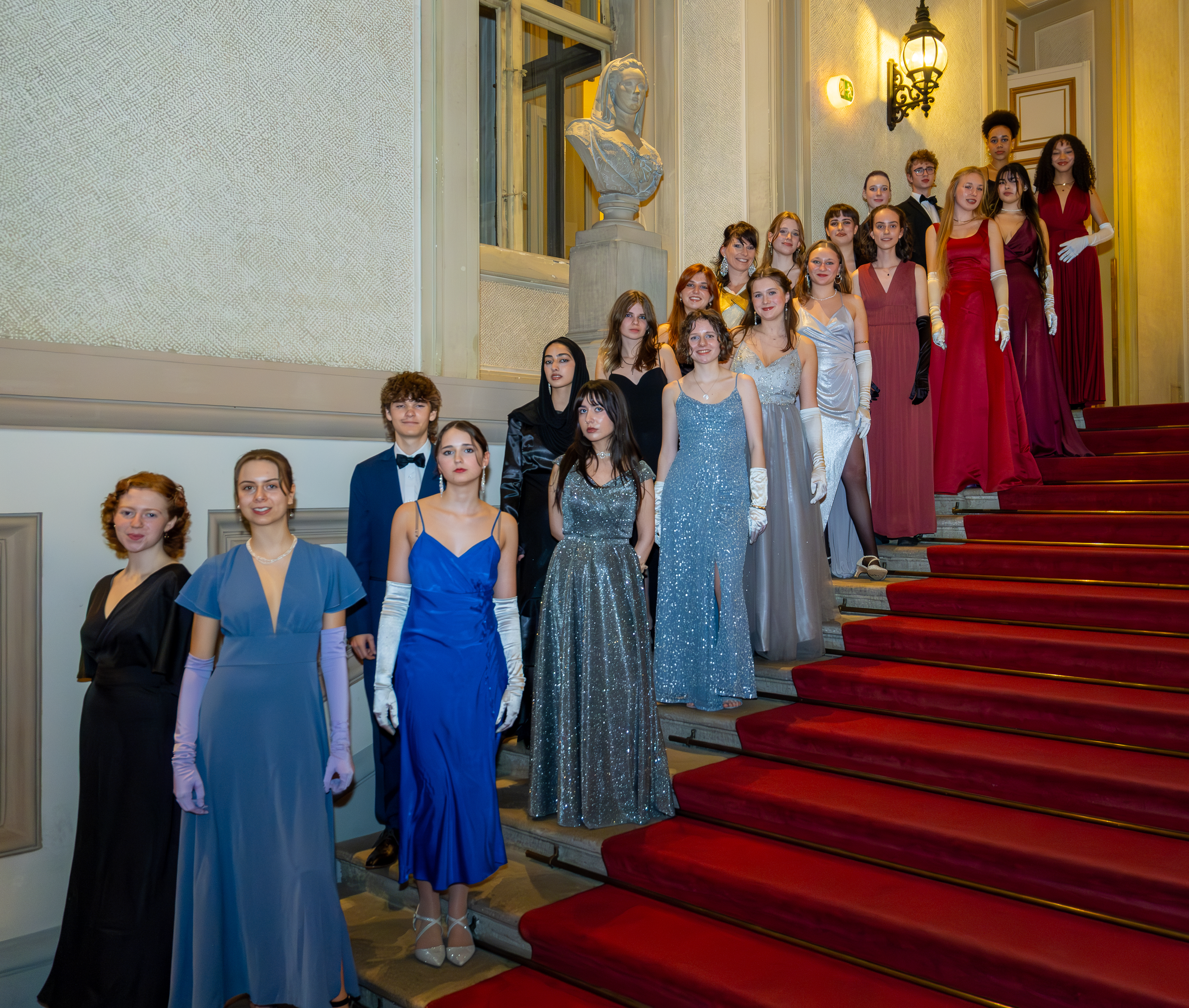 Wir freuen uns euch im bodenlangen Ballkleid, Hosenanzug oder Anzug mit Krawatte oder Masche begrüßen zu dürfen. Farblich dürft ihr euch gerne selbst etwas überlegen.